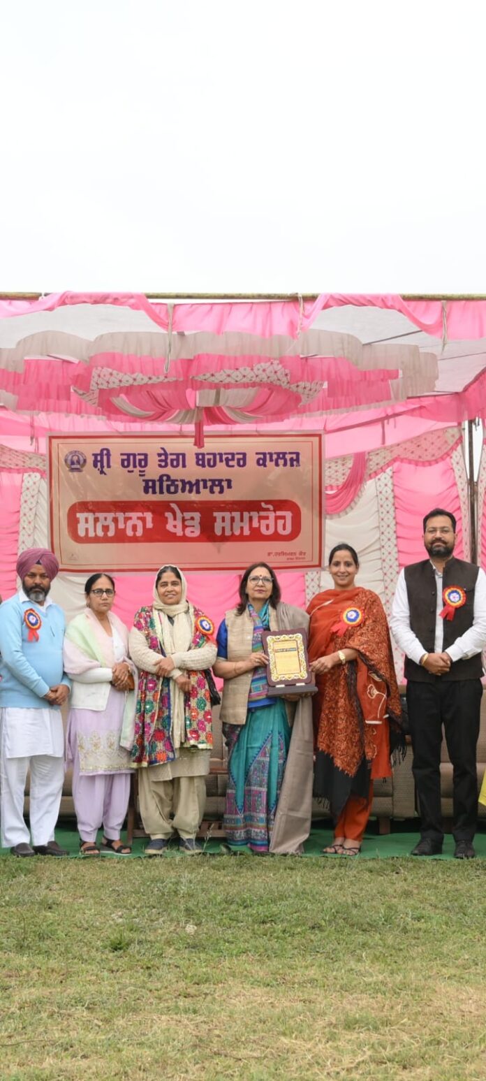 ਸ਼੍ਰੀ ਗੁਰੂ ਤੇਗ ਬਹਾਦਰ ਕਾਲਜ, ਸਠਿਆਲਾ ਵਿਖੇ ਗੁਰੂ ਨਾਨਕ ਦੇਵ ਯੂਨੀਵਰਸਿਟੀ ਦੇ ਉਪ-ਕੁਲਪਤੀ ਪ੍ਰੋ. (ਡਾ.) ਕਰਮਜੀਤ ਸਿੰਘ ਅਤੇ ਡੀਨ, ਕਾਲਜ ਵਿਕਾਸ ਕੌਂਸਲ ਪ੍ਰੋ. (ਡਾ.) ਸਰੋਜ ਅਰੋੜਾ ਦੇ ਦਿਸ਼ਾ-ਨਿਰਦੇਸ਼ਾਂ ਹੇਠ ਕਾਲਜ ਇੰਚਾਰਜ ਡਾ. ਹਰਸਿਮਰਨ ਕੌਰ ਦੀ ਯੋਗ ਅਗਵਾਈ ਵਿੱਚ ਸਲਾਨਾ ਖੇਡ ਸਮਾਰੋਹ ਦਾ ਸਫਲ ਆਯੋਜਨ ਕੀਤਾ ਗਿਆ।