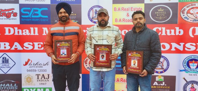 ਪਟਿਆਲਾ ()-  ਜੱਸੀ ਢੱਲ ਮੈਮੋਰੀਅਲ ਸਪੋਰਟਸ ਕਲੱਬ (ਰਜਿ.) ਵੱਲੋਂ ਤੀਜਾ ਜੱਸੀ ਢੱਲ ਮੈਮੋਰੀਅਲ ਬੇਸਬਾਲ ਚੈਂਪੀਅਨਸ਼ਿਪ ਸ.ਕੋ.ਐੱਡ ਮਲਟੀਪਰਪਜ਼ ਸੀਨੀਅਰ ਸੈਕੰਡਰੀ ਸਕੂਲ ਪਾਸੀ ਰੋਡ ਪਟਿਆਲਾ ਵਿਖੇ ਕਰਵਾਈ ਜਾ ਰਹੀ ਹੈ। ਇਸ ਚੈਂਪੀਅਨਸ਼ਿਪ ਵਿੱਚ ਭਾਰਤ ਦੇ ਦੇ ਵੱਖ ਵੱਖ ਸਥਾਨਾਂ ਤੋਂ ਟੀਮਾਂ ਨੇ ਭਾਗ ਲਿਆ। ਇਸ ਚੈਂਪੀਅਨਸ਼ਿਪ ਦਾ ਹਰ ਮੈਚ ਬਹੁਤ ਹੀ ਰੋਮਾਂਚਕ ਰਿਹਾ ਅਤੇ ਦਰਸ਼ਕਾਂ ਵਿੱਚ ਵੀ ਇਸ ਚੈਂਪੀਅਨਸ਼ਿਪ ਨੂੰ ਵੇਖਣ ਦਾ ਬਹੁਤ ਉਤਸ਼ਾਹ ਰਿਹਾ। ਇਸ ਚੈਂਪੀਅਨਸ਼ਿਪ ਦੌਰਾਨ ਸ਼੍ਰੀ ਮਨਪ੍ਰੀਤ ਸਿੰਘ (ਕੰਪਿਊਟਰ ਫੈਕਲਟੀਸ.ਸ.ਸ.ਸ.ਸ਼ੇਰਮਾਜਰਾਪਟਿਆਲਾ)ਸ਼੍ਰੀ ਮਨਦੀਪ ਸਿੰਘ (ਪੰਜਾਬੀ ਮਾਸਟਰਪੀ.ਐੱਮ.ਸ਼੍ਰੀ ਸ.ਹ.ਸ.ਚੌਰਾਪਟਿਆਲਾ) ਅਤੇ ਸ਼੍ਰੀ ਦੀਪਇੰਦਰ ਸਿੰਘ (ਲੈਕਚਰਾਰ ਸਰੀਰਿਕ ਸਿੱਖਿਆਸ.ਸ.ਸ.ਸ. ਹਰਪਾਲਪੁਰਪਟਿਆਲਾ) ਦਾ ਚੈਂਪੀਅਨਸ਼ਿਪ ਵਿੱਚ ਵਿਸ਼ੇਸ਼ ਤੌਰ ਤੇ ਪਹੁੰਚਣ ਤੇ ਚੈਂਪੀਅਨਸ਼ਿਪ ਪ੍ਰਬੰਧਕਾਂ ਵੱਲੋਂ ਸਨਮਾਨਿਤ ਕੀਤਾ ਗਿਆ। ਸ਼੍ਰੀ ਮਨਦੀਪ ਸਿੰਘ ਜੀ ਨੇ ਕਿਹਾ ਕਿ ਉਹਨਾਂ ਨੂੰ ਇਹ ਸਨਮਾਨ ਪ੍ਰਾਪਤ ਕਰਕੇ ਬਹੁਤ ਮਾਣ ਮਹਿਸੂਸ ਹੋ ਰਿਹਾ ਹੈ । ਸ਼੍ਰੀ ਦੀਪਇੰਦਰ ਸਿੰਘ ਜੀ ਨੇ ਕਿਹਾ ਕਿ ਇਹ ਚੈਂਪੀਅਨਸ਼ਿਪ ਬੇਸਬਾਲ ਨੂੰ ਭਾਰਤ ਵਿੱਚ ਪ੍ਰਭੁਲਿਤ ਕਰਨ ਵਿੱਚ ਵਿਸ਼ੇਸ਼ ਭੂਮਿਕਾ ਨਿਭਾਏਗੀ। ਸ਼੍ਰੀ ਮਨਪ੍ਰੀਤ ਸਿੰਘ ਨੇ ਕਿਹਾ ਕਿ ਇਸ ਚੈਂਪੀਅਨਸ਼ਿਪ ਦੇ ਪ੍ਰਬੰਧ ਬਹੁਤ ਹੀ ਉੱਚ ਦਰਜੇ ਦੇ ਹਨ ਅਤੇ ਉਹਨਾਂ ਨੂੰ ਆਸ ਹੈ ਕਿ ਇਹ ਚੈਂਪੀਅਨਸ਼ਿਪ ਆਉਣ ਵਾਲੇ ਸਮੇਂ ਵਿੱਚ ਸਫਲਤਾ ਦੀਆਂ ਨਵੀਆਂ ਉਚਾਈਆਂ ਛੂਏਗੀ। ਇਸ ਮੌਕੇ ਤੇ ਸ੍ਰੀ ਹਰੀਸ਼ ਸਿੰਘਸ੍ਰੀਮਤੀ ਮਮਤਾ ਰਾਣੀਸ੍ਰੀ ਯਾਦਵਿੰਦਰ ਸਿੰਘ ਵਾਲੀਆਸ੍ਰੀ ਵਿਕਰਮ ਸਿੰਘਸ੍ਰੀ ਗੁਰਜੀਤ ਸਿੰਘਸ੍ਰੀ ਜਸਵਿੰਦਰ ਸਿੰਘ ਅਤੇ ਹੋਰ ਕੋਚ ਮੌਜੂਦ ਸਨ ।