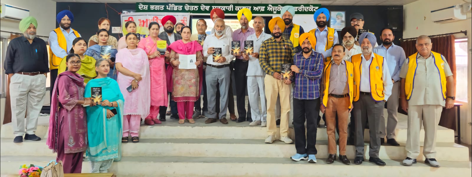 ਡਾਕੰਵਲਦੀਪ ਸਿੰਘ ਬਰਾੜ ਦੀ ਨਿੱਘੀ ਯਾਦ ਨੂੰ ਸਮਰਪਿਤ ਡਾ. ਸੰਦੀਪ ਸਿੰਘ ਘੰਡ ਦੁਆਰਾ ਲਿਖੀ ਹੋਈ ਪੁਸਤਕ ‘ਜ਼ਿੰਦਗੀ ਦਾ ਆਨੰਦ ਕਿਵੇਂ ਮਾਣੀਏ?’ ਦੇਸ਼ ਭਗਤ ਪੰਡਿਤ ਚੇਤਨ ਦੇਵ ਸਰਕਾਰੀ ਕਾਲਜ ਆਫ਼ ਐਜੂਕੇਸ਼ਨ ਫ਼ਰੀਦਕੋਟ ਵਿਖੇ ਲੋਕ ਅਰਪਣ ਕੀਤੀ ਗਈ। ਇਹ ਪੁਸਤਕ ਕਾਲਜ ਦੀ ਓਲਡ ਸਟੂਡੈਂਟਸ ਐਸੋਸੀਏਸ਼ਨ ਦੇ ਸਹਿਯੋਗ ਨਾਲ ਲੋਕ ਅਰਪਣ ਕੀਤੀ। ਇਸ ਮੌਕੇ ਓ.ਐੱਸ.ਏ. ਦੇ ਪ੍ਰਧਾਨ ਪ੍ਰਿੰਸੀਪਲ ਡਾ.ਪਰਮਿੰਦਰ ਸਿੰਘ ਨੇ ਸਭ ਨੂੰ ‘ਜੀ ਆਇਆਂ’ ਕਿਹਾ। ਡਾ. ਸੰਦੀਪ ਘੰਡ ਨੇ ਆਪਣੇ ਵਿਚਾਰਾਂ ਵਿੱਚ ਆਪਣੇ ਮਰਹੂਮ ਮਿੱਤਰ ਡਾ. ਕੰਵਲਦੀਪ ਸਿੰਘ ਬਰਾੜ ਨੂੰ ਯਾਦ ਕੀਤਾ ਅਤੇ ਪੁਸਤਕ ਬਾਰੇ ਵਿਚਾਰ ਪ੍ਰਗਟਾਏ। ਇਸ ਤੋਂ ਇਲਾਵਾ ਸ਼੍ਰੀਮਤੀ ਕਿਰਨਦੀਪ ਕੌਰ, ਲਾਇਨਜ਼ ਕਲੱਬ ਫ਼ਰੀਦਕੋਟ (ਵਿਸ਼ਾਲ) ਦੇ ਪ੍ਰਧਾਨ ਅਮਰਦੀਪ ਸਿੰਘ, ਪ੍ਰਿੰਸੀਪਲ ਡਾ. ਸੁਖਚੈਨ ਸਿੰਘ ਬਰਾੜ ਨੇ ਆਪਣੇ ਵਿਚਾਰ ਵਿਦਿਆਰਥੀਆਂ ਨਾਲ ਸਾਂਝੇ ਕੀਤੇ। ਅੰਤ ਵਿੱਚ ਕਾਲਜ ਦੇ ਪ੍ਰਿੰਸੀਪਲ ਡਾ. ਰਾਜੇਸ਼ ਮੋਹਨ ਨੇ ਸਭ ਦਾ ਧੰਨਵਾਦ ਕੀਤਾ। ਸਟੇਜ ਸਕੱਤਰ ਦੀ ਭੂਮਿਕਾ ਲਾਈਨ ਗੁਰਵਿੰਦਰ ਸਿੰਘ ਧਿੰਗੜਾ ਨੇ ਬਾਖੂਬੀ ਨਿਭਾਈ। ਇਸ ਮੌਕੇ ਡਾ. ਨਿਰਮਲ ਕੌਸ਼ਿਕ, ਪ੍ਰਿੰ. ਸੁਰੇਸ਼ ਅਰੋੜਾ, ਰਾਧਾ ਕ੍ਰਿਸ਼ਨ, ਡਾ.ਜੁਗਰਾਜ ਸਿੰਘ, ਬਲਦੇਵ ਤੇਰੀਆ, ਵਿਨੋਦ ਮਿੱਤਰ, ਹਰਿੰਦਰ ਦੂਆ, ਸਵਰਨਜੀਤ ਸਿੰਘ ਗਿੱਲ, ਵਿਸ਼ਵਜੀਤ ਸਿੰਘ ਡੇਜੀ, ਸੰਤੋਖ ਸਿੰਘ, ਡਾ. ਕੁਲਦੀਪ ਕੌਰ ਤੋਂ ਇਲਾਵਾ ਕਾਲਜ ਦੇ ਸਟਾਫ਼ ਵਿੱਚੋਂ ਮੰਜੂ ਕਪੂਰ, ਪ੍ਰੋ. ਰਣਜੀਤ ਸਿੰਘ, ਡਾ. ਰੁਪਿੰਦਰਜੀਤ ਕੌਰ, ਪ੍ਰੋ.ਬੀਰਇੰਦਰਜੀਤ ਸਿੰਘ, ਪ੍ਰੋ. ਜਸਬੀਰ ਕੌਰ, ਪ੍ਰੋ. ਸੁਖਪਾਲ ਕੌਰ, ਪ੍ਰੋ. ਫ਼ੈਨੀ ਚਾਵਲਾ, ਪ੍ਰੋ. ਸੁਖਵਿੰਦਰ ਕੌਰ, ਪ੍ਰੋ. ਕਰਮਜੀਤ ਸਿੰਘ, ਪ੍ਰੋ. ਮਨਵਿੰਦਰ ਕੌਰ, ਪ੍ਰੋ. ਰਿਮੀ ਅਤੇ ਵਿਦਿਆਰਥੀ ਹਾਜ਼ਰ ਸਨ।