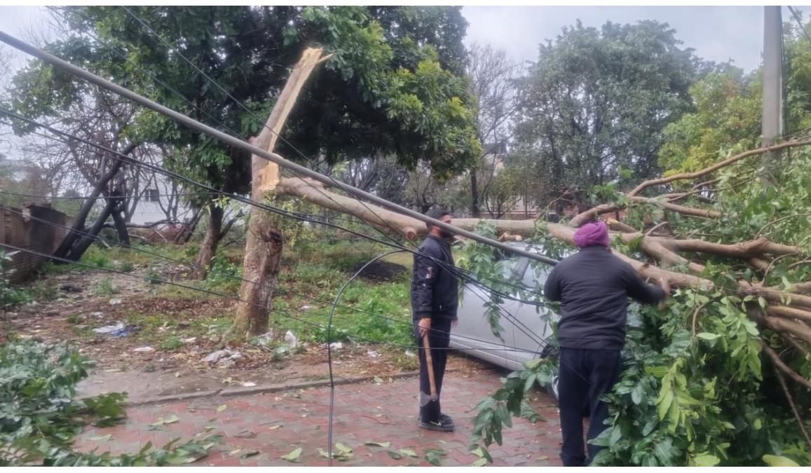 ਬਿਜਲੀ ਵਿਭਾਗ ਦੇ ਸਰਕਾਰੀ ਬੁਲਾਰੇ ਨੇ ਕਿਹਾ ਕਿ ਬਨੂੜ ਭਬਾਤ 66 ਕੇਵੀ ਲਾਈਨ ‘ਤੇ ਇੱਕ ਨਿਰਮਾਣ ਅਧੀਨ ਟ੍ਰਾਂਸਮਿਸ਼ਨ ਟਾਵਰ ਡਿੱਗ ਗਿਆ, ਜਿਸ ਕਾਰਨ ਜ਼ੀਰਕਪੁਰ ਖੇਤਰ ਵਿੱਚ ਸਪਲਆਈ ‘ਚ ਵੱਡਾ ਵਿਘਨ ਪਿਆ। ਪ੍ਰਾਪਤ ਰਿਪੋਰਟਾਂ ਅਨੁਸਾਰ ਰਾਜ ਵਿੱਚ ਲਗਭਗ 600 ਤੋਂ ਵੱਧ ਖੰਭੇ ਟੁੱਟਣ ਦੀ ਰਿਪੋਰਟ ਹੈ ਅਤੇ ਡਿਸਟ੍ਰੀਬਿਊਸ਼ਨ ਟ੍ਰਾਂਸਫਾਰਮਰਾਂ ਨੂੰ ਵੀ ਵੱਡਾ ਨੁਕਸਾਨ ਹੋਇਆ ਹੈ। ਪੀ.ਐਸ.ਪੀ.ਸੀ.ਐਲ. ਦੇ ਸਟਾਫ਼ ਨੇ ਸਪਲਾਈ ਨੂੰ ਬਹਾਲ ਕਰਨ ਲਈ ਦਿਨ ਭਰ ਮੁਸ਼ਕਲ ਹਾਲਾਤਾਂ ਵਿੱਚ ਕੰਮ ਕੀਤਾ।
