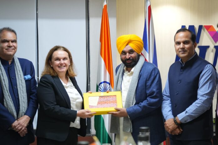 ਬ੍ਰਿਟਿਸ਼ ਡਿਪਟੀ ਹਾਈ ਕਮਿਸ਼ਨਰ ਐਲਬਾ ਸਮੈਰੀਗਲੀਓ ਅਤੇ ਯੂ.ਕੇ. ਨਾਲ ਸਬੰਧਤ ਵੱਖ-ਵੱਖ ਅਤੇ ਬਹੁ-ਕੌਮੀ ਕੰਪਨੀਆਂ ਦੇ ਨੁਮਾਇੰਦਿਆਂ ਨਾਲ ਮੁਲਾਕਾਤ ਦੌਰਾਨ ਮੁੱਖ ਮੰਤਰੀ ਨੇ ਕਿਹਾ ਕਿ ਪੰਜਾਬ ਰਵਾਇਤੀ ਅਤੇ ਨਵੇਂ ਉੱਭਰ ਰਹੇ ਖੇਤਰਾਂ ਵਿੱਚ ਯੂ.ਕੇ. ਨਾਲ ਮਜ਼ਬੂਤ ਕਾਰੋਬਾਰੀ ਸਬੰਧਾਂ ਦੀ ਸਾਂਝ ਪਾਉਣ ਦਾ ਇਛੁੱਕ ਹੈ। ਉਨ੍ਹਾਂ ਕਿਹਾ ਕਿ ਸੂਬੇ ਨੇ ਸਹਿਯੋਗ ਦੇ ਪੰਜ ਮੁੱਖ ਖੇਤਰਾਂ ਜਿਨ੍ਹਾਂ ਵਿੱਚ ਉਚੇਰੀ ਸਿੱਖਿਆ, ਟੈਕਸਟਾਈਲ, ਇੰਜੀਨੀਅਰਿੰਗ, ਆਟੋ ਕੰਪੋਨੈਂਟਸ ਅਤੇ ਖੇਤੀਬਾੜੀ ਤੇ ਫੂਡ ਪ੍ਰੋਸੈਸਿੰਗ ਸ਼ਾਮਲ ਹਨ, ਦੇ ਨਾਲ-ਨਾਲ ਫਾਰਮਾਸਿਊਟੀਕਲ ਅਤੇ ਸਿਹਤ ਸੰਭਾਲ, ਸੂਚਨਾ ਤਕਨਾਲੋਜੀ ਅਤੇ ਵਪਾਰਕ ਸੇਵਾਵਾਂ ਸਮੇਤ ਨਵੇਂ ਉੱਭਰ ਰਹੇ ਖੇਤਰਾਂ ਦੀ ਪਛਾਣ ਕੀਤੀ ਹੈ। ਭਗਵੰਤ ਸਿੰਘ ਮਾਨ ਨੇ ਪੰਜਾਬ ਦੀਆਂ ਸਮਰੱਥਾਵਾਂ ਨੂੰ ਦਰਸਾਉਂਦਿਆਂ ਇੱਕ ਵਿਸਤ੍ਰਿਤ ਖਾਕਾ ਪੇਸ਼ ਕੀਤਾ, ਜਿਸ ਵਿੱਚ ਇਹ ਉਜਾਗਰ ਕੀਤਾ ਗਿਆ ਕਿ ਪੰਜਾਬ ਵਿੱਚ ਪੰਜ ਹਵਾਈ ਅੱਡਿਆਂ ਅਤੇ ਮਜ਼ਬੂਤ ਕੌਮੀ ਰਾਜਮਾਰਗ ਲਿੰਕਾਂ ਨਾਲ ਵਿਸ਼ਵ ਪੱਧਰੀ ਤੇ ਮਜ਼ਬੂਤ ਸੰਪਰਕ ਨੈਟਵਰਕ ਹੈ, ਜੋ ਘਰੇਲੂ ਅਤੇ ਅੰਤਰਰਾਸ਼ਟਰੀ ਬਾਜ਼ਾਰਾਂ ਤੱਕ ਨਿਰਵਿਘਨ ਪਹੁੰਚ ਯਕੀਨੀ ਬਣਾਉਂਦਾ ਹੈ।