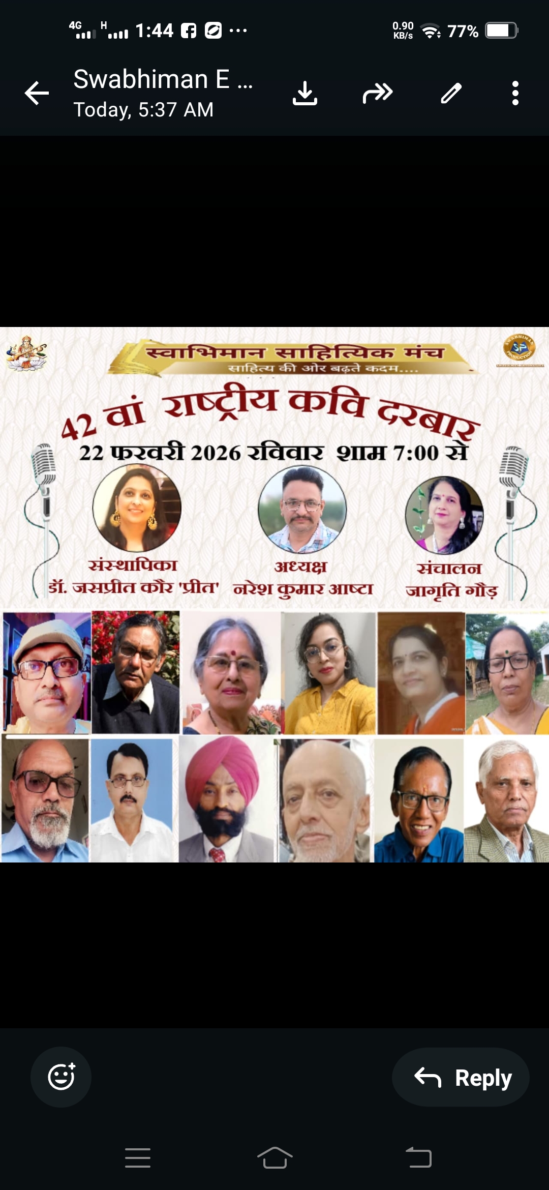 ਸਵਾਭਿਮਾਨ ਸਾਹਿਤ ਮੰਚ ਦਾ 42ਵਾਂ ਰਾਸ਼ਟਰੀ ਕਵੀ ਦਰਬਾਰ : ਹਿੰਦੀ ਅਤੇ ਪੰਜਾਬੀ ਰਚਨਾਵਾਂ ਦਾ ਇੱਕ ਸ਼ਾਨਦਾਰ ਸੰਗਮ