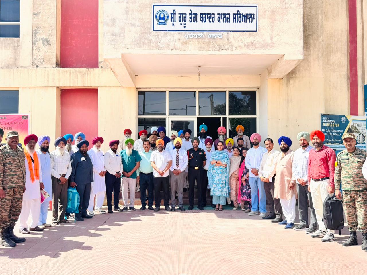 ਸ੍ਰੀ ਗੁਰੂ ਤੇਗ  ਬਹਾਦਰ ਕਾਲਜ ਸਠਿਆਲਾ ਵਿਖੇ ਉਪਕੁਲਪਤੀ ਪ੍ਰੋ (ਡਾ.)ਕਰਮਜੀਤ ਸਿੰਘ ਅਤੇ ਡੀਨ ਕਾਲਜਜ ਪ੍ਰੋ.(ਡਾ.) ਸਰੋਜ ਅਰੋੜਾ ਦੇ ਦਿਸ਼ਾ ਨਿਰਦੇਸ਼ਾਂ ਤਹਿਤ  16 ਗਾਰਡਸ ਦੇ ਸਹਿਯੋਗ ਨਾਲ 55(1) ਮੈਕ ਬ੍ਰਿਗੇਡ, ਭਾਰਤੀ ਫੌਜ ਦੇ ਸਹਿਯੋਗ ਨਾਲ ਭਾਰਤੀ ਫੌਜ ਦੇ ਵੈਟਰਨਜ਼ / ਵੀਰ ਨਾਰੀ ਆਉਟਰੀਚ ਪ੍ਰੋਗਰਾਮ ਦਾ ਸਫਲਤਾਪੂਰਵਕ ਆਯੋਜਨ ਕੀਤਾ ਗਿਆ। ਇਹ ਪ੍ਰੋਗਰਾਮ ਆਰਮੀ ਵੱਲੋਂ ਆਯੋਜਿਤ ਕੀਤਾ ਗਿਆ, ਜਿਸਦਾ ਮੁੱਖ ਉਦੇਸ਼ ਫੌਜ ਦੇ ਸਾਬਕਾ ਸੈਨਿਕਾਂ ਅਤੇ ਵੀਰ ਨਾਰੀਆਂ ਦੀਆਂ ਭਲਾਈ ਸੰਬੰਧੀ ਸਮੱਸਿਆਵਾਂ ਨੂੰ ਸਿੱਧੇ ਤੌਰ ’ਤੇ ਸੰਬੰਧਤ ਅਧਿਕਾਰੀਆਂ ਨਾਲ ਗੱਲਬਾਤ ਰਾਹੀਂ ਹੱਲ ਕਰਨਾ ਸੀ।