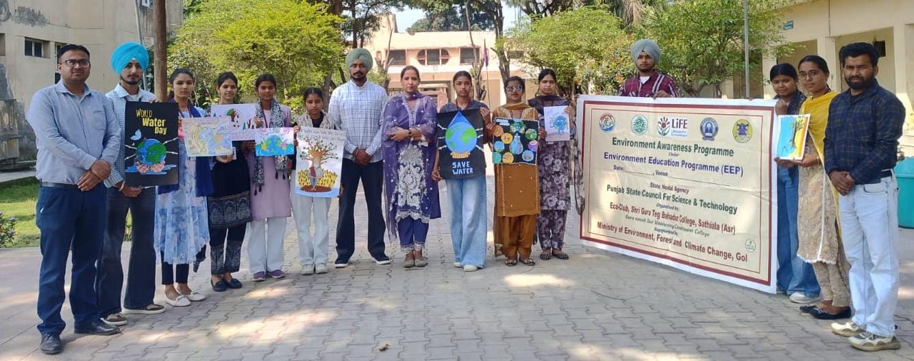 ਗੁਰੂ ਨਾਨਕ ਦੇਵ ਯੂਨੀਵਰਸਿਟੀ ਦੇ ਸਿੱਧੇ ਪ੍ਰਬੰਧਾਂ ਹੇਠ ਮਾਨਯੋਗ ਉਪ-ਕੁਲਪਤੀ ਪ੍ਰੋ. (ਡਾ.) ਕਰਮਜੀਤ ਸਿੰਘ ਅਤੇ ਡੀਨ ਕਾਲਜ ਵਿਕਾਸ ਕੌਂਸਲ ਪ੍ਰੋ. (ਡਾ.) ਸਰੋਜ ਅਰੋੜਾ ਦੀ ਰਹਿਨੁਮਾਈ ਵਿੱਚ ਸ੍ਰੀ ਗੁਰੂ ਤੇਗ ਬਹਾਦਰ ਕਾਲਜ, ਸਠਿਆਲਾ ਦੇ ਕਾਲਜ ਇੰਚਾਰਜ ਡਾ. ਹਰਸਿਮਰਨ ਕੌਰ ਦੀ ਯੋਗ ਅਗਵਾਈ ਹੇਠ ਕਾਲਜ ਦੇ ਇਕੋ ਕਲੱਬ ਵੱਲੋਂ ਵਿਸ਼ਵ ਜਲ ਦਿਵਸ ਮਨਾਇਆ ਗਿਆ।