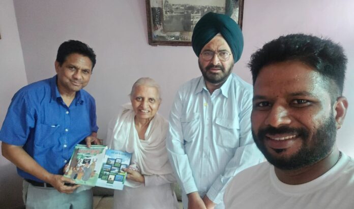 ਫੋਟੋ: ਡਾ. ਰਮਾ ਰਾਤਨ ਨੂੰ ਪੁਸਤਕਾਂ ਭੇਂਟ ਕਰਦੇ ਹੋਏ ਬਲਜਿੰਦਰ ਮਾਨ, ਕਮਲਜੀਤ ਨੀਲੋਂ ਅਤੇ ਨਰਿੰਦਰ ਕੁਮਾਰ ਆਦਿ।