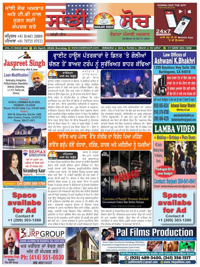 ਸਰੀ: 102 ਸਾਲ ਪਹਿਲਾਂ ਐਬਸਫੋਰਡ, ਕੈਨੇਡਾ ਤੋਂ ਪੰਜਾਬ ਜਾ ਕੇ ਸ਼ਹੀਦ ਹੋਣ ਵਾਲੇ ਮਹਾਨ ਯੋਧੇ ਬਬਰ ਅਕਾਲੀ ਸ਼ਹੀਦ ਭਾਈ ਕਰਮ ਸਿੰਘ ਦੌਲਤਪੁਰ 'ਚੀਫ਼ ਐਡੀਟਰ' 'ਬਬਰ ਅਕਾਲੀ ਲਹਿਰ' ਦੀ ਜਿੰਦ-ਜਾਨ ਸਨ ਅਤੇ ਇਸ ਜਥੇਬੰਦੀ ਨੂੰ...