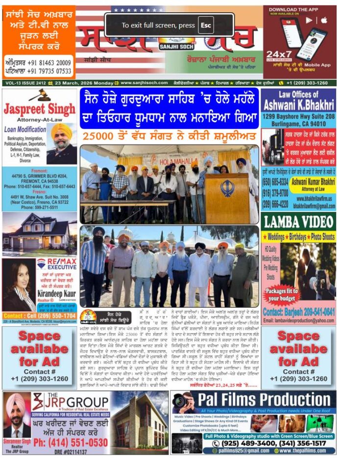 ਕੈਲੀਫੋਰਨੀਆਂ ਦੇ ਸ਼ਹਿਰ ਸੈਲਮਾ ਵਿਖੇ 32 ਵੇ ਸਲਾਨਾ ਨਗਰ ਕੀਰਤਨ ਨੇ ਸਿਰਜ਼ਿਆ ਕੈਲੀਫੋਰਨੀਆਂ ਦੇ ਸ਼ਹਿਰ ਸੈਲਮਾ ਵਿਖੇ 32 ਵੇ ਸਲਾਨਾ ਨਗਰ ਕੀਰਤਨ ਨੇ ਸਿਰਜ਼ਿਆ ਖਾਲਸਾਈ...